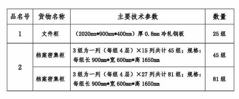 1.2供貨周期:此次采購分三批供貨,首批擬在2021年9月開始供應(yīng)密集架45組(600mm×900mm×1650mm);第二批擬在2022年3月供應(yīng)密集架81組(600mm×900mm×1650mm);第三批擬在2022年6月供應(yīng)文件柜25組(900mm×400mm×2020mm)。簽訂合同后,所列項目清單貨物交付完成約需10個月。