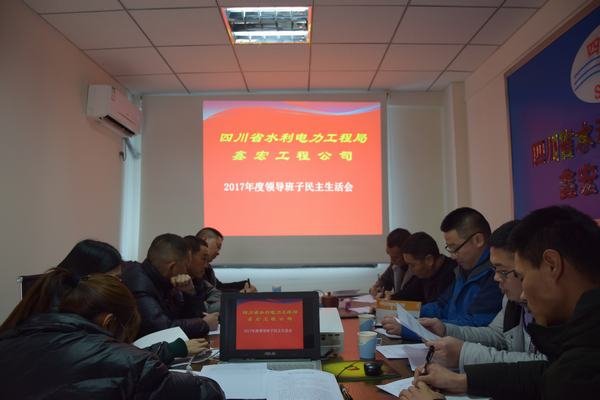 2018年2月10日上午,按照局黨委《關于召開2017年度處級領導班子民主生活會的通知》的文件精神要求,鑫宏工程公司在都江堰組織召開2017年度領導班子民主生活會。會議由公司經理毛偉主持,全體班子成員參加,公司各部門負責人列席會議。