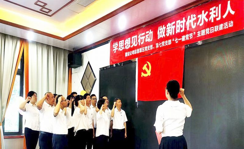 為慶祝中國共產黨成立102周年,2023年6月30日,公司總部第五黨支部、第七黨支部組織開展了“學思想見行動 做新時代水利人”慶“七一”主題黨日聯建活動,活動圍繞貫徹學習主題教育必讀書目、重溫入黨誓詞以及開展主題教育知識競答內容開展。