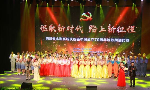 2019年9月25日下午,由四川省水利廳主辦、四川省水利電力工會承辦的省水利系統慶祝新中國成立70周年“謳歌新時代、踏上新征程”詩歌朗誦比賽在崇州四川省水利職業技術學院大禮堂隆重舉行。省水利廳黨組書記、廳長胡云出席并講話,廳黨組成員、省紀委駐水利廳紀檢監察組組長李啟兵,廳黨組成員、副廳長李勇藺,廳黨組成員、副廳長譚小平,廳黨組成員、廳機關黨委書記趙斌出席并分別為獲獎單位頒獎。工程局黨委委員、總工程師汪輝德全程觀看演出并擔任評委。