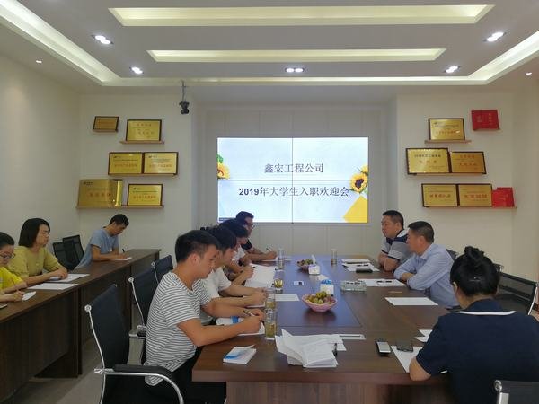 7月17日上午,局鑫宏工程公司在都江堰會議室舉行了新進大學生入職歡迎會。公司黨支部書記、經理毛偉、副經理張靜、總工鄭中華、工會主席羅極川以及各科室負責人參加歡迎會。公司辦公室主任、勞人科長何莉容主持會議。