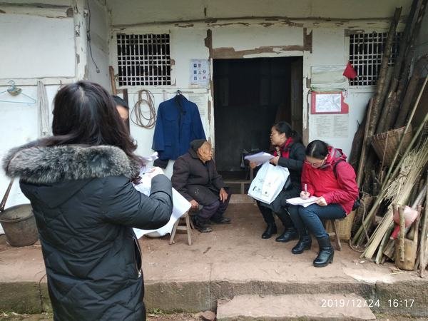為全面落實脫貧攻堅省際交叉考核安排部署,2019年12月24日,工程局組織開展脫貧攻堅入戶調研活動,局工會副主席、機關綜合黨支部書記付麟麗帶領李敏、劉紅麗、馮磊一行,前往安岳縣鎮子鎮玉峰村對工程局27戶對口幫扶對象進行全面的入戶問卷調查。