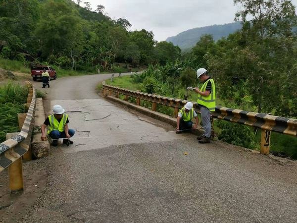 項目部進場人員根據設計單位昆勘院提供的《錫林努姆項目檢測計劃》,對羅納1和錫林努姆兩座待改造電站進行結構尺寸及平面位置的測量檢查,為下一步對兩電站的改造設計提供了基礎數據。同時,項目部組織人員對巴新首都莫爾茲比港至工地現場所有的橋梁進行了檢查,詳細記錄每座橋梁的位置、橋面寬度及結構形式,并初步擬定了橋梁的加固計劃,以確保項目施工設備及工程金屬結構、機電設備的順利進場。