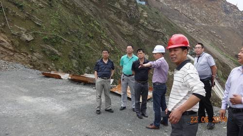 2014年5月22日下午3點,宜賓市水務局總工廖建孫、宜賓市質監站站長楊斌、宜賓市防洪度汛辦劉煉、筠連縣水務局局長李澤明、筠連縣水務局工程股胡吉華、筠連縣團林鄉政府人大主席、三川水務公司副總郭仕勇、三川水務公司項目部經理張長興、三川水務公司技術員宗德宇、監理單位現場代表羅立等一行人對后溝水庫樞紐工程進行了防洪度汛安全大檢查。項目部副經理周加利、吳兵,項目部副總工王志,項目部安全部部長洪偉等陪同檢查。