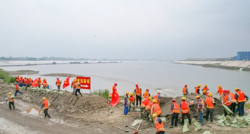 此次演練活動地點在青神縣岷江虎渡溪航電樞紐工程閘壩二枯圍堰部位,按照演練應(yīng)急方案,演練環(huán)節(jié)主要內(nèi)容為:二枯圍堰船閘等部位正在施工,巡查人員發(fā)現(xiàn),二枯上游圍堰外側(cè)河道水位猛漲有漫壩的可能,現(xiàn)場情況十分危急,施工作業(yè)人員生命和國家財產(chǎn)安全面臨嚴重威脅。模擬場景一:應(yīng)急搶險人員及設(shè)備撤離至指定安全位置;模擬場景二:撤離人員在撤離途中有人受傷處置場景;模擬場景三:應(yīng)急隊員用防洪沙袋加高圍堰。繼續(xù)跟蹤監(jiān)測水位險情情況直至水位下降安全演練結(jié)束。本次演練活動,在參建各方配合下,各演練工作組動作迅速、密切配合、銜接有序,為搶險救災(zāi)爭取了寶貴時間。