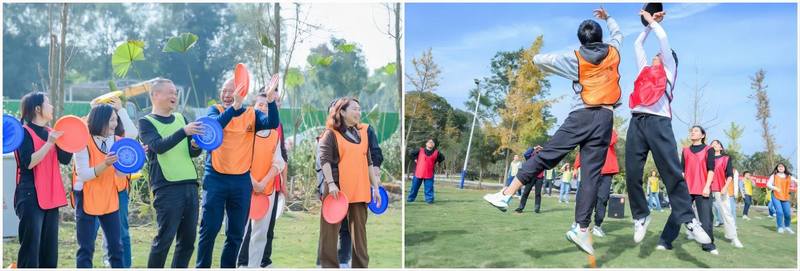 拍拍背、搭搭肩、劃一手拳、叫一聲大哥,奇思妙想的熱身小游戲引得大家爆發(fā)陣陣歡笑;隊(duì)旗、隊(duì)名、隊(duì)長(zhǎng)、口號(hào),隨機(jī)組成的團(tuán)隊(duì)士氣凝聚,摩拳擦掌,“戰(zhàn)斗”一觸即發(fā);飛盤9宮格、飛盤投籃、躲避飛盤賽、飛盤飛靶,一場(chǎng)場(chǎng)緊張又激烈的團(tuán)隊(duì)較量正在上演,展現(xiàn)出一幅幅繽紛又難忘的美好畫卷。
