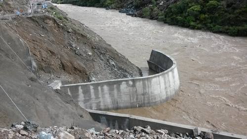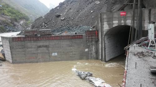 2014年7月16日,導流洞全面過流(水洛河最大洪峰流量650m3/s),業主建管部率設計、監理、其他施工單位來我局項目部表示祝賀并給予了高度評價。