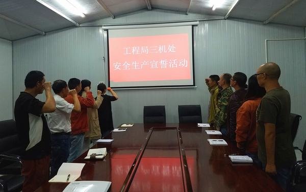 2017年5月27日晚,按照局相關(guān)通知要求,三機(jī)處組織處全體領(lǐng)導(dǎo)班子成員及各部門負(fù)責(zé)人在博瓦電站項(xiàng)目部舉行了安全生產(chǎn)主體責(zé)任宣誓活動。