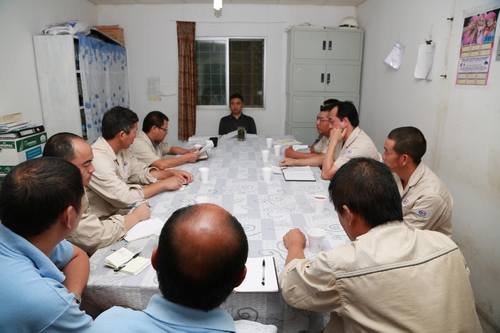 聽取匯報后,鄔清富局長首先代表工程局、局黨委向戰斗在遙遠的異國他鄉的廣大職工和配屬人員表示親切慰問。他對TP項目部前期的工作給予充分肯定,同時,就今后的工作向項目部提出了三點要求:1、狠抓安全、質量、進度、環保工作,注意安全生產,不能麻痹大意,進一步提高砼質量及外觀工藝,倒排工期,確保在2015年12月底合同工期內順利完工;2、認真研究合同,準備資料,抓好結算;3、加強項目管理,加強人、材、物的管理,及時總結涉外施工管理經驗。最后,鄔局長要求項目部、局工會要大力宣傳職工的愛崗敬業奉獻精神,進一步關心涉外職工生活,努力幫助解決實際困難,切實讓職工感受到組織的關懷。