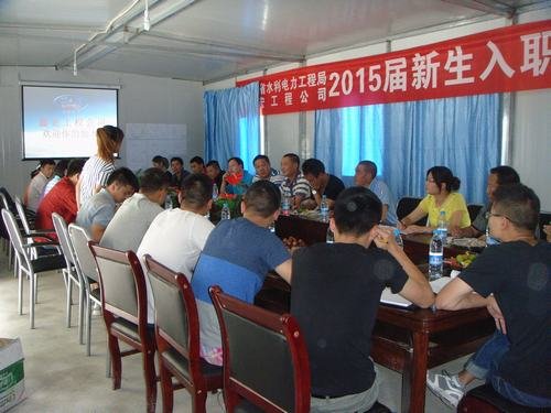 2015年7月31日下午,為使新進大學(xué)生員工盡快習(xí)慣工地環(huán)境和感受到項目大家庭的溫暖,局鑫宏工程公司在固滴電站項目部組織召開了新進大學(xué)生員工歡迎會。公司領(lǐng)導(dǎo)、各項目部領(lǐng)導(dǎo)、各部門負責(zé)人及全體學(xué)生參加了會議。會議由新藏項目綜合部長李潔主持。
