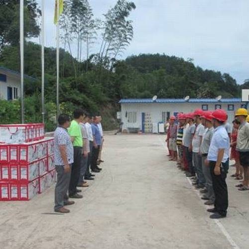 局第一工程處參建職工代表列隊(duì)歡迎, 宋慶伍作了慰問(wèn)講話。受縣委書(shū)記王光柱同志委托,他代表宜賓縣委、縣人民政府向參加蟠龍湖水庫(kù)建設(shè)的員工表示誠(chéng)摯的慰問(wèn)!他說(shuō),蟠龍湖水庫(kù)作為該縣唯一的一座中型水庫(kù),是宜賓市在建的最大水利工程,更是一項(xiàng)利民工程。工程開(kāi)工以來(lái),建設(shè)者們克服了交通不便、工程任務(wù)緊等困難,突出工作重點(diǎn),優(yōu)化施工,有力地推進(jìn)了工程建設(shè),再一次展現(xiàn)了“四川水利鐵軍”的風(fēng)采和國(guó)家一級(jí)施工企業(yè)的優(yōu)秀企業(yè)文化。四川省水利電力工程局具有豐富的施工經(jīng)驗(yàn)和管理能力,在宜賓地區(qū)承建了多個(gè)水利水電項(xiàng)目,為開(kāi)發(fā)宜賓水利水電資源做出了巨大貢獻(xiàn),促進(jìn)了宜賓縣的地方經(jīng)濟(jì)發(fā)展。工程建成后,雙龍鎮(zhèn)不僅有高峽出平湖的壯景麗畫,而且將擴(kuò)灌萬(wàn)畝良田,惠澤四方百姓。在此,請(qǐng)同志們?cè)谛燎诠ぷ鞯耐瑫r(shí)保重身體,為宜賓農(nóng)田水利建設(shè)再立新功。