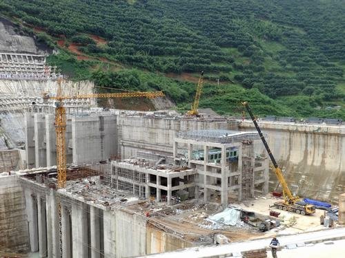 主廠房副廠房及安裝間施工左岸俯視左岸上游右岸上游俯視右岸下游俯視