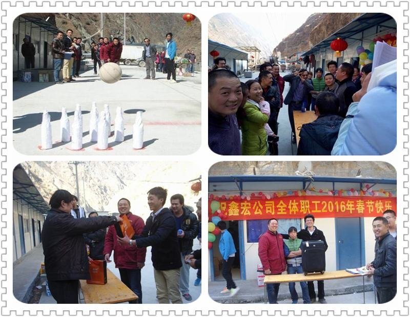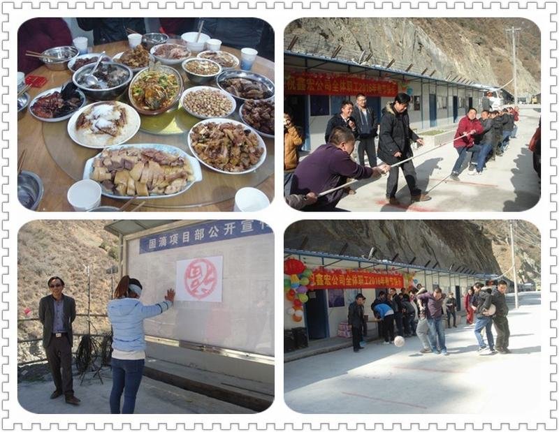 為豐富固滴項目工地職工的文娛生活,使春節期間留在工地繼續奮戰的全體員工能感受到家的溫馨和氛圍,項目部通過精心組織和策劃,開展了一場別開生面的歡度春節活動。2016年2月8日,鑫宏工程公司在固滴項目部開展2016年歡慶春節活動,共同在這個辭舊迎新的日子展望未來、攜手共創固滴項目嶄新的一年。