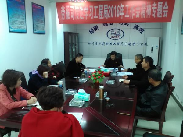 2016年4月1日上午,勞服司組織全體干部職工在勞服司汽修廠會(huì)議室集中傳達(dá)學(xué)習(xí)工程局2016年工作會(huì)議精神。