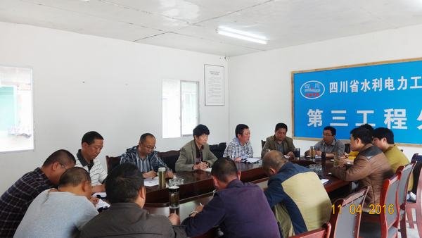 三處處長、項目部經(jīng)理李軍匯報了前期工作,并對后期沖刺階段的施工計劃進行了詳細說明,將每個節(jié)點目標分解細化,時間明確到天,責任明確到人。著力抽調得力人員充實到困難最大的取水洞豎井工作面,保證“5.31”下閘蓄水的目標實現(xiàn)。
