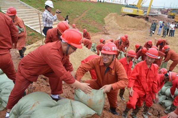 5月5日上午9:30分,豐城市政府、龍頭山項(xiàng)目部在龍頭山水電站左岸聯(lián)合組織開(kāi)展了防洪度汛應(yīng)急演練。按照演練方案,我部首先進(jìn)行人員安全轉(zhuǎn)移,受災(zāi)害影響的人員轉(zhuǎn)移至地勢(shì)較高的辦公大樓及其他區(qū)域;其次進(jìn)行應(yīng)急搶險(xiǎn),假設(shè)贛江遭遇超標(biāo)準(zhǔn)洪水,為保證人民生命財(cái)產(chǎn)安全,對(duì)防洪堤采用編制沙袋臨時(shí)加高。