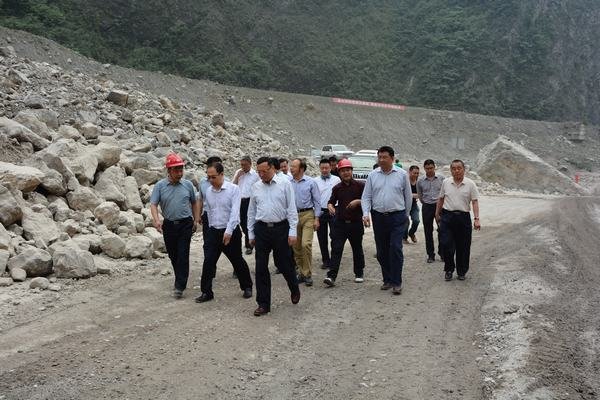 5月5 日上午,省水利廳黨組書記、廳長(zhǎng)胡云率廳黨組成員、總工程師梁軍,黨組成員、省防汛辦公室主任譚小平一行,在德陽(yáng)市水務(wù)局局長(zhǎng)許飛地,綿竹市委副書記、市長(zhǎng)陳萬(wàn)見(jiàn),綿竹市副市長(zhǎng)張立柯,綿竹市人大副主任、市水務(wù)局局長(zhǎng)楊成富等陪同下,到工程局第一工程處承擔(dān)處置的綿竹市小崗劍山體高位滑坡應(yīng)急整治現(xiàn)場(chǎng)檢查指導(dǎo)工作。
