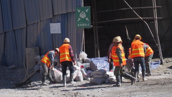 演練開始,抗洪搶險(xiǎn)小組組長吳畏向搶險(xiǎn)救援指揮部匯報(bào)當(dāng)前的水情、險(xiǎn)情。搶險(xiǎn)救援指揮部總指揮曹軍聽取了匯報(bào)后,下達(dá)了搶險(xiǎn)命令:立即啟動新藏項(xiàng)目部《防汛搶險(xiǎn)應(yīng)急救援預(yù)案》,搶險(xiǎn)救援突擊隊(duì)伍迅速到達(dá)崗位,開展搶險(xiǎn)救援工作。隨著警報(bào)聲響起,各小組以最快速度按預(yù)定方案奔赴現(xiàn)場開展搶險(xiǎn)救援工作。營救被困人員、救護(hù)受傷民工、受災(zāi)物資轉(zhuǎn)移等演練項(xiàng)目過程緊張有序、忙而不亂、環(huán)環(huán)相扣。