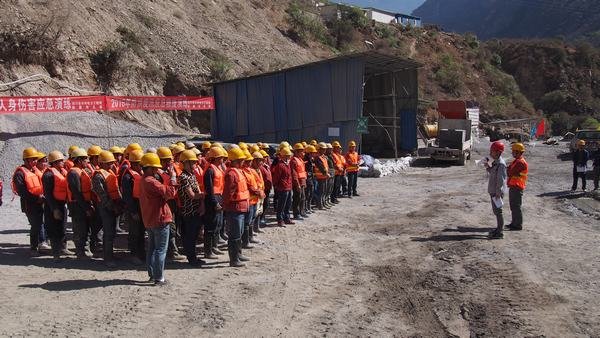 近期,降雨頻繁,水洛河水位持續(xù)上漲,防汛工作形勢嚴(yán)峻。華電國際水洛河公司高度重視,專門召開會議對本年度《防洪度汛、搶險(xiǎn)救災(zāi)工作》進(jìn)行再動員、再部署、再落實(shí),并要求各單位成立搶險(xiǎn)救援突擊隊(duì)。5月12日,鑫宏公司所承建的新藏項(xiàng)目部結(jié)合《四川省水利電力工程局新藏電站引水隧洞Ⅲ標(biāo)工程2016年防洪度汛應(yīng)急救援預(yù)案》、《新藏電站引水隧洞Ⅲ標(biāo)工程防洪度汛演練方案》及本標(biāo)工程2016年防汛工作的實(shí)際情況,由項(xiàng)目部和各施工班組組成搶險(xiǎn)救援突擊隊(duì),在8#支洞施工現(xiàn)場組織開展防洪搶險(xiǎn)應(yīng)急救援及人身傷害演練活動。建管部、監(jiān)理部的有關(guān)領(lǐng)導(dǎo)和相關(guān)兄弟單位負(fù)責(zé)人觀摩了此次演練活動。