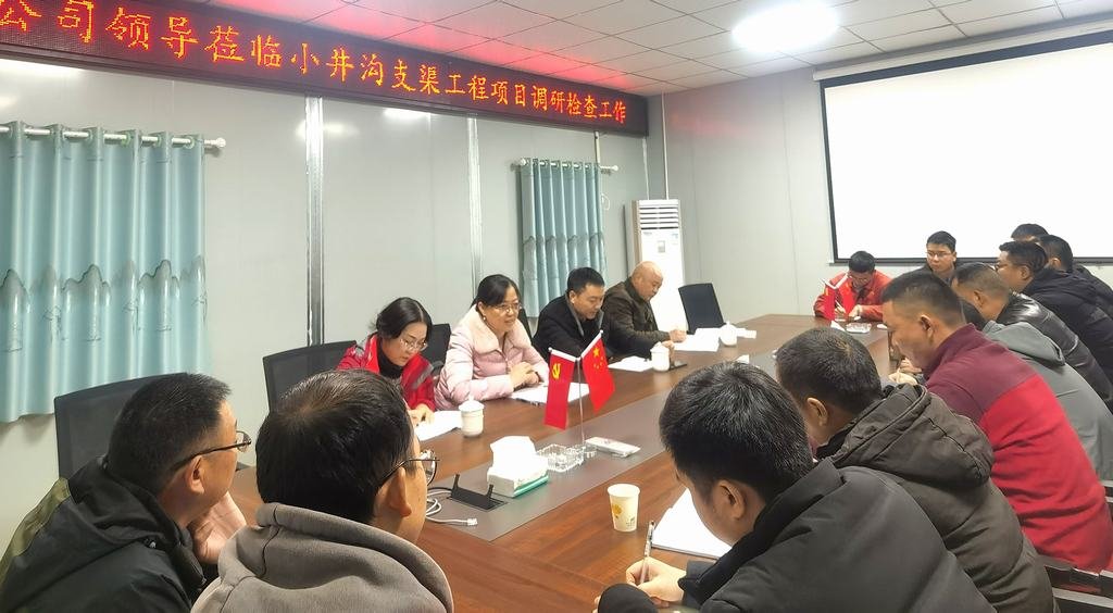 2021年12月17日至18日,公司黨委委員、職工董事、工會主席夏永紅,公司紀委委員、工會副主席付麟麗,工會辦公室李敏及黨委工作部胡志勇一行,赴虎渡溪航電樞紐工程、小井溝支渠工程項目開展工會工作調研,并進行安全生產監督檢查及消防安全檢查。